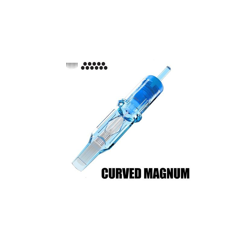 Textured Curved Magnum Long Taper Cartridge Needles by EMALLA ELIOT in a 20-piece pack. Ideal for shading practice and training. Outlet item – expired, no longer sterile.